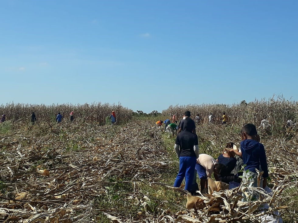 O milho também foi apanhando quando ainda estava verde para a utilização em eventos da comunidade. Segundo o tuxaua Jabson a produção é uma ação comunitária com intuito de incentivar a população a ter o sustento através da agricultura familiar, também foi plantado meia hectares de mandioca, ele afirma: “daqui uns dias também teremos resultado dessa ação, vamos ter a farinha comunitária e bastante pajuaru para tomar” e já cogita para o ano que vem triplicar esse rendimento.